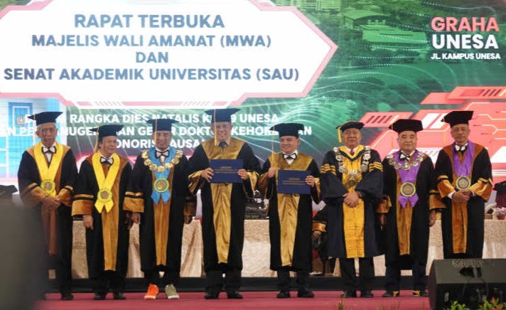 Jakarta – Sekretaris Jenderal Kementerian Hukum dan HAM (Kemenkumham), Komjen Pol. Andap Budhi Revianto menerima Penganugerahan Gelar Doktor Kehormatan (Honoris Causa) dari Universitas Negeri Surabaya (Unesa).