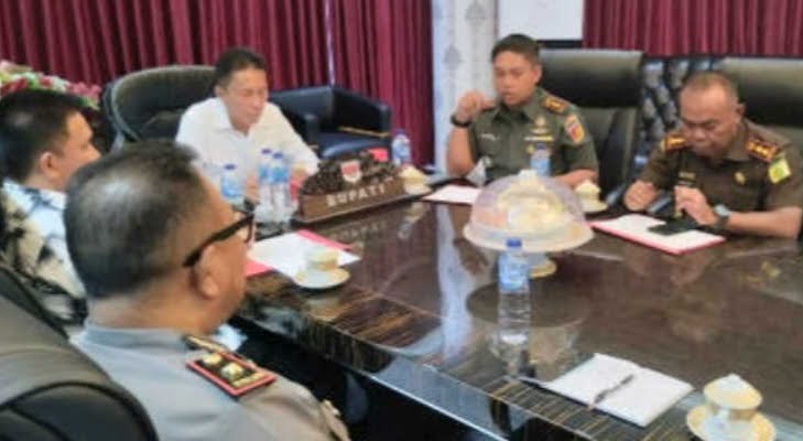 TargetInvestigasi.co.id, Minsel – Komandan Komando Distrik Militer ( Dandim ) 1302/Minahasa Letnan Kolonel ( Letkol ) Inf Mutakbir menghadiri Rapat Koordinasi ( Rakor ) Forum Komunikasi Pimpinan Daerah ( Forkopimda ) Kabupaten Minahasa Selatan, di gelar di Kantor Pemerintah Kabupaten ( Pemkab ), Kelurahan Pondang, Kecamatan Amurang Timur, Kabupaten Minahasa Selatan ( Minsel ), Provinsi Sulawesi Utara pada Rabu (10/01/2024) pukul 14.10 wita.