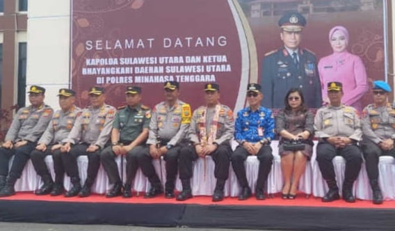 TargetInvestigasi.co.id, Mitra – Komandan Komando Distrik Militer ( Dandim ) 1302/Minahasa Letnan Kolonel Inf Mutakbir bersama Forum Komunikasi Pimpinan Daerah ( Forkopimda ) Kabupaten Minahasa Tenggara ( Mitra ) menyambut kunjungan kerja Kapolda Sulawesi Utara Inspektur Jendral ( Irjen ) Pol. Yudhiawan SH, S.I.K, M.H, M.Si, di Mapolres Kelurahan Lowu Utara, Kecamatan Ratahan, Kabupaten Minahasa Tenggara, Provinsi Sulawesi Utara, pada Senin, 18/03/2024 pukul 10.50 wita.