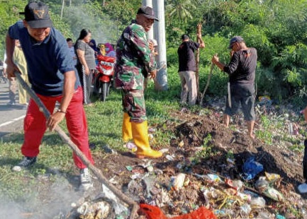 TargetInvestigasi.co.id, Mitra – Bintara Pembina Desa ( Babinsa ) 1302-12/Belang Serka Ibrahim Hilibala melaksanakan Karya Bakti Pembersihan Sampah di sepanjang Jalan Raya Belang Mangkit, Kecamatan Belang, Kabupaten Minahasa Tenggara ( Mitra ), Provinsi Sulawesi Utara pada selasa 14/05/2024 Pukul 07.00 Wita.