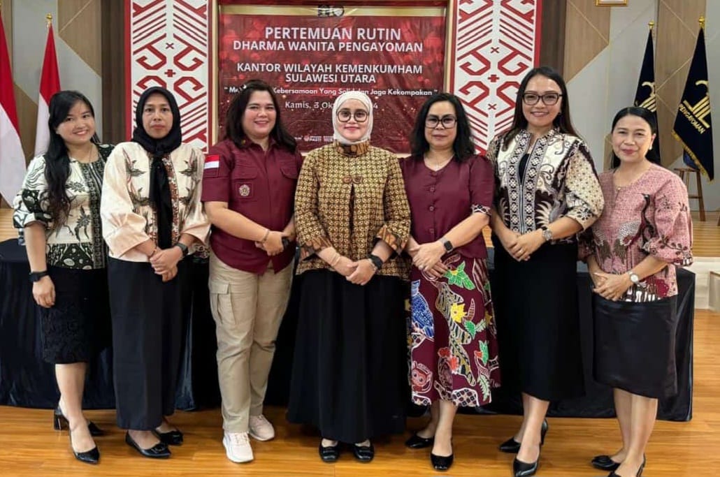 TargtInvestigasi.co.id, Manado – Ketua Dharma Wanita Lapas Tondano, Velny Paath-Panungkelan, serta Kasubag TU dan anggota DWP Lapas Tondano turut hadir dalam pertemuan rutin Dharma Wanita Persatuan dan Dharma Wanita Pengayoman Kantor Wilayah Kementerian Hukum dan Hak Asasi Manusia Sulawesi Utara yang digelar di Aula Mapalus pada Kamis (03/10/2024).